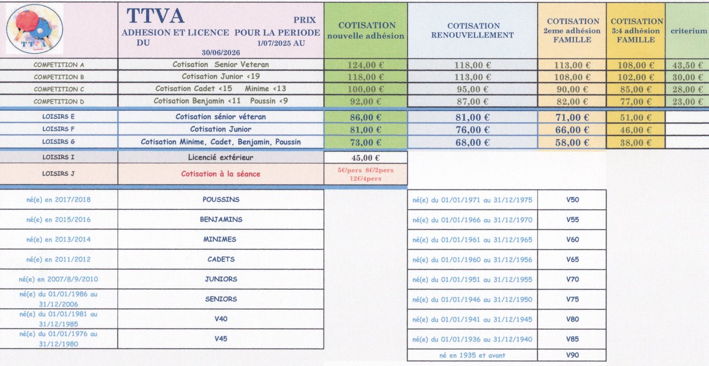 Adhérer au TTVA c'est Passion, Compétition, Fun