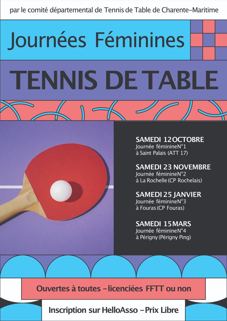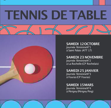 TOUR 2 : Samedi 23 Novembre 2024 à St Palais sur Mer (Salle Omnisport, Rue des Ormeaux) & Saintes (Salle E. Matarasso, Rue René Cassin)